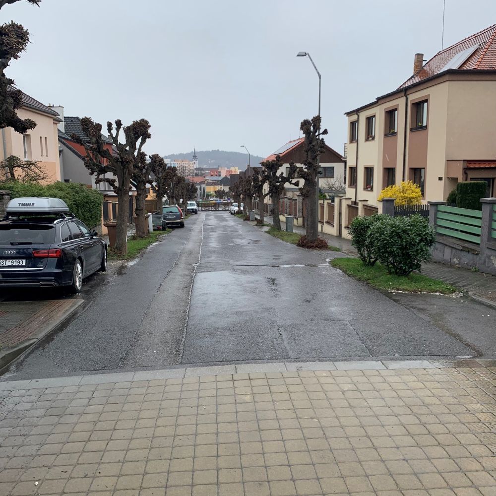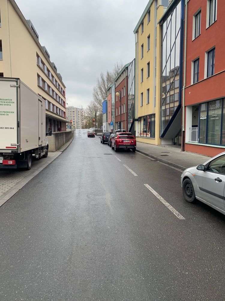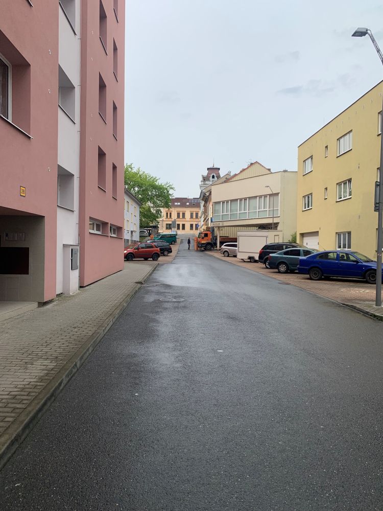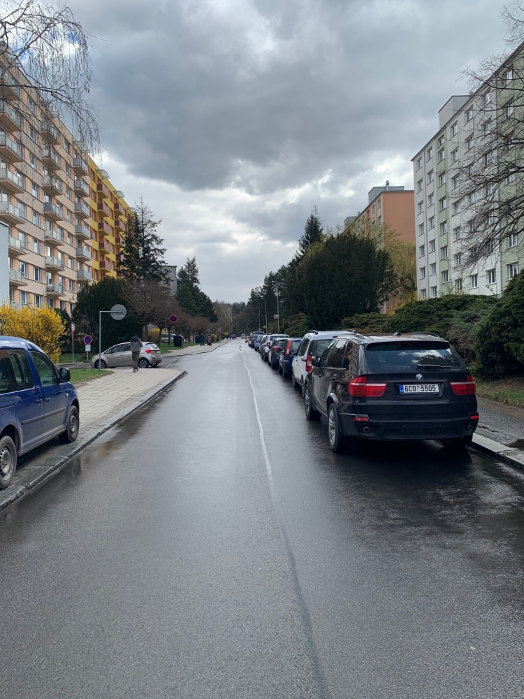 Smrkovická - levá strana u domů, Truhlářská + parkoviště