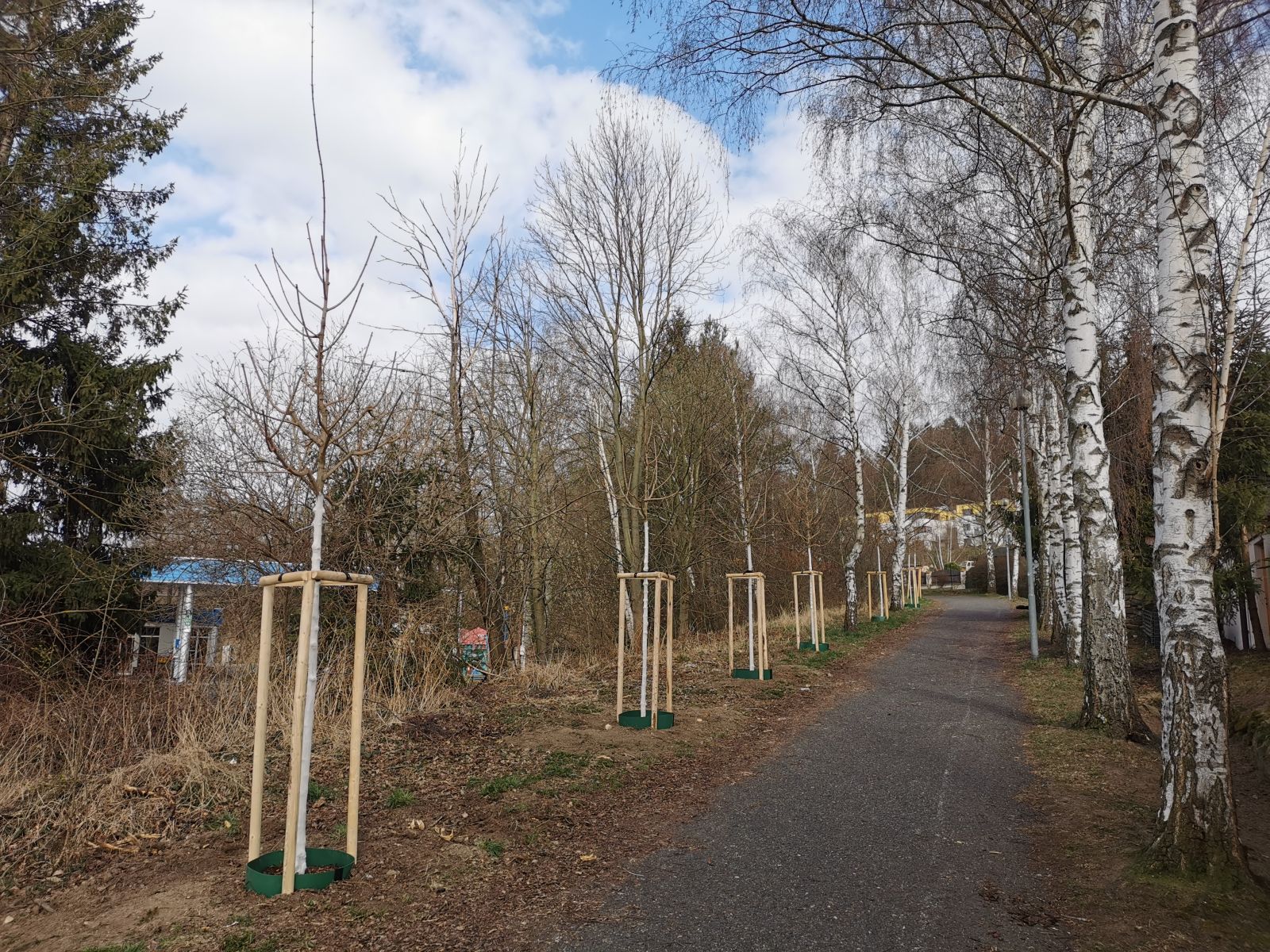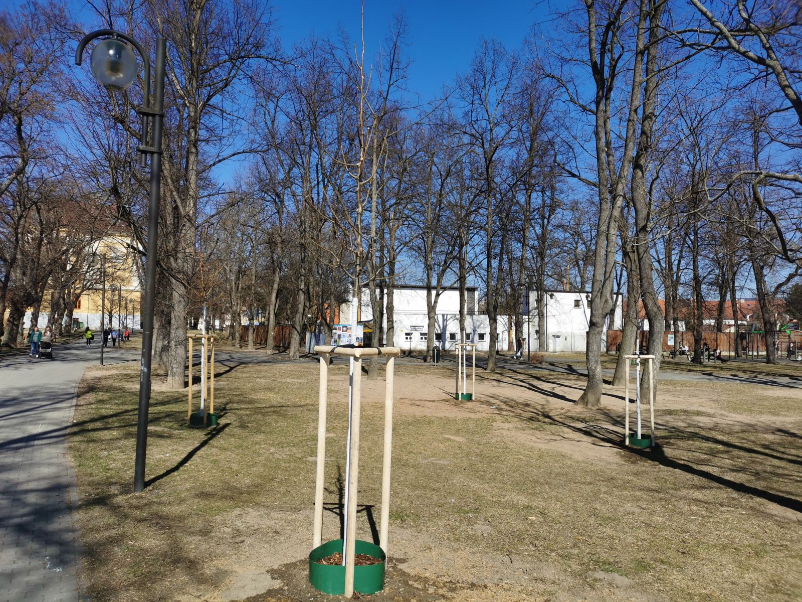 Zahradníci městských služeb vysazovali nové stromy....