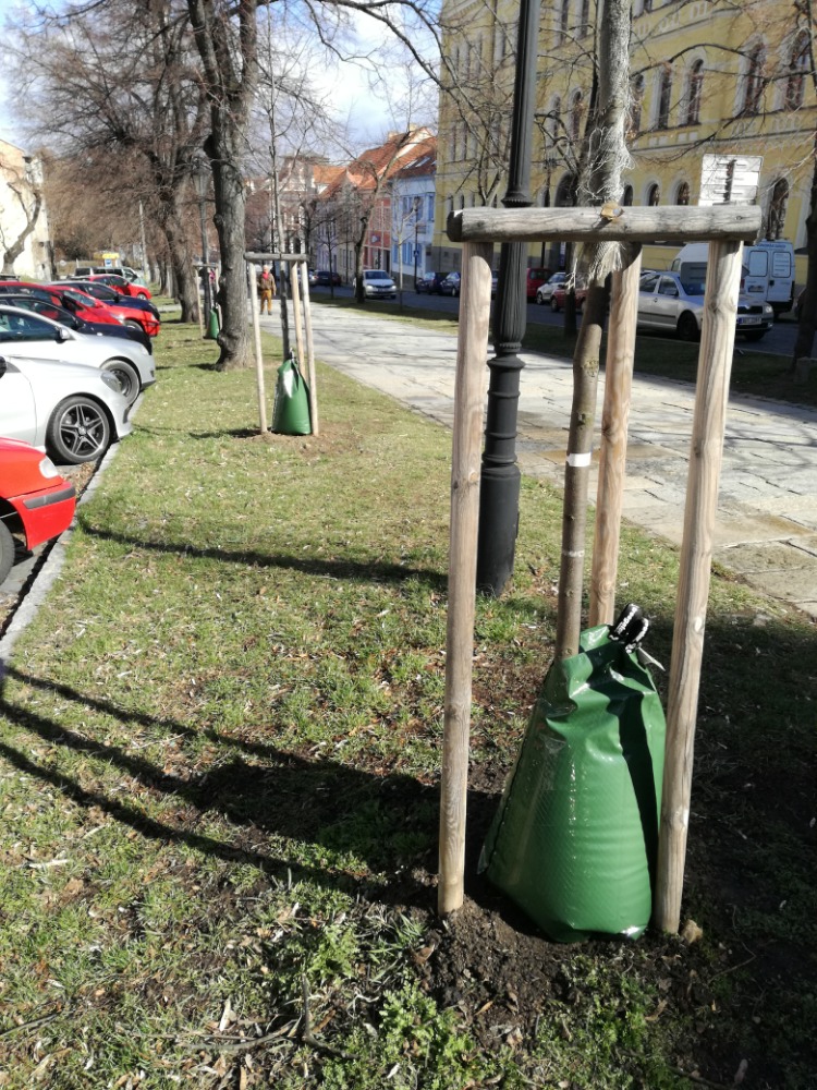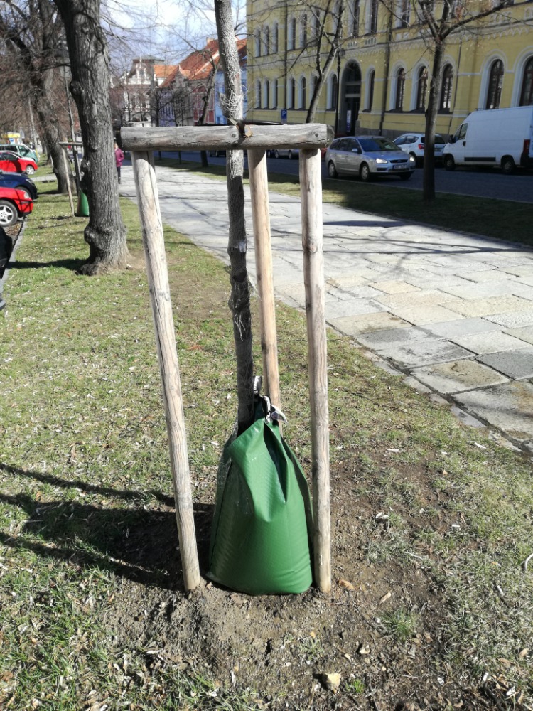 Vodu přímo ke kořenům stromů zajistí samozavlažovací vaky...