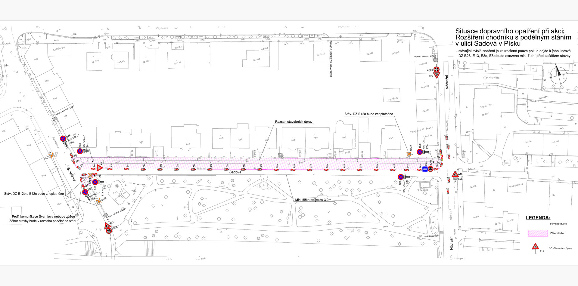 Od pondělí 30.9.2024 bude probíhat realizace rozšíření chodníku s podélným stáním v Sadové ulici.